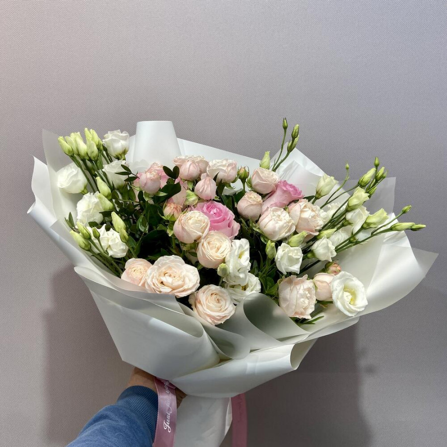 Букет из пионовидных роз и белых эустом в Орехово-Зуево